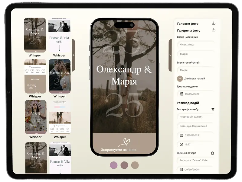Після кількох хвилин налаштування отримали готову сторінку запрошення з усіма деталями. Дуже зручно!